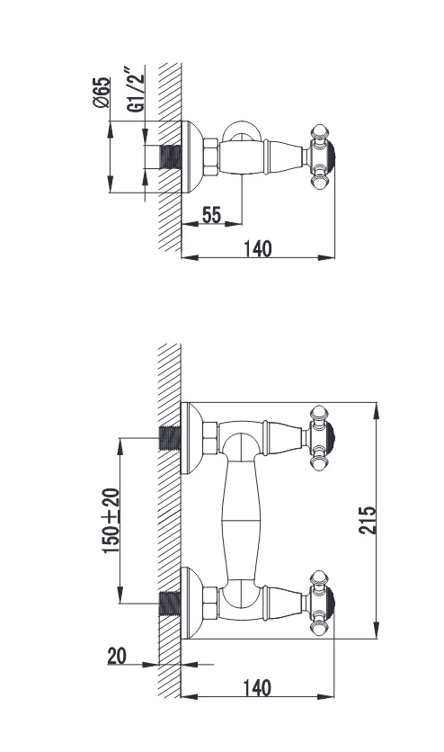 Omnires Retro Bateria prysznicowa ścienna Chrom RE7240CR