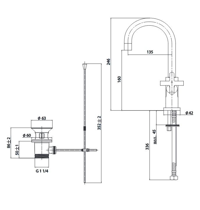 Omnires Modern Bateria umywalkowa z korkiem klik-klak Chrom C301CR