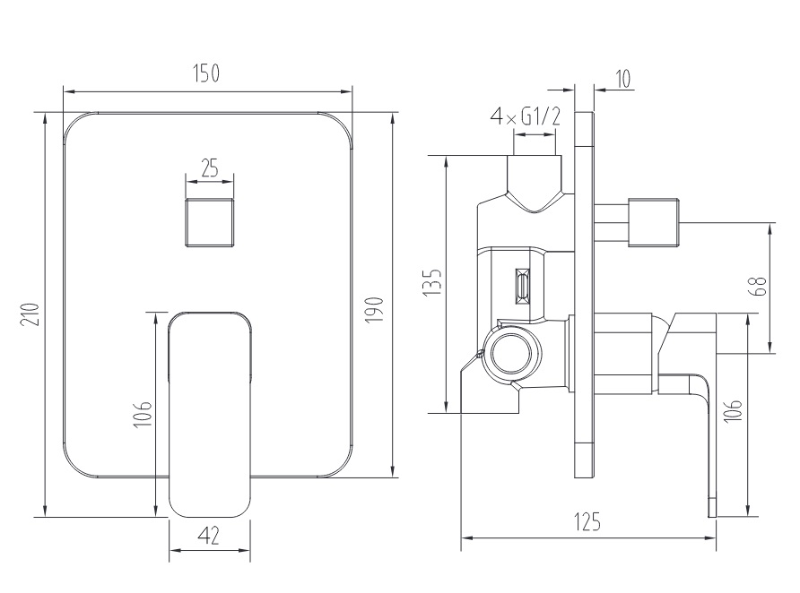 Omnires Apure Bateria wannowo-prysznicowa podtynkowa Chrom AP2235CR