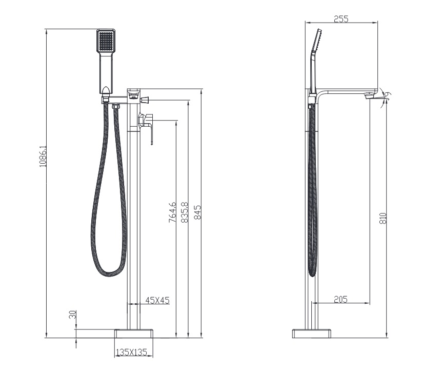 Omnires Apure Bateria wannowa wolnostojąca Chrom AP2233CR