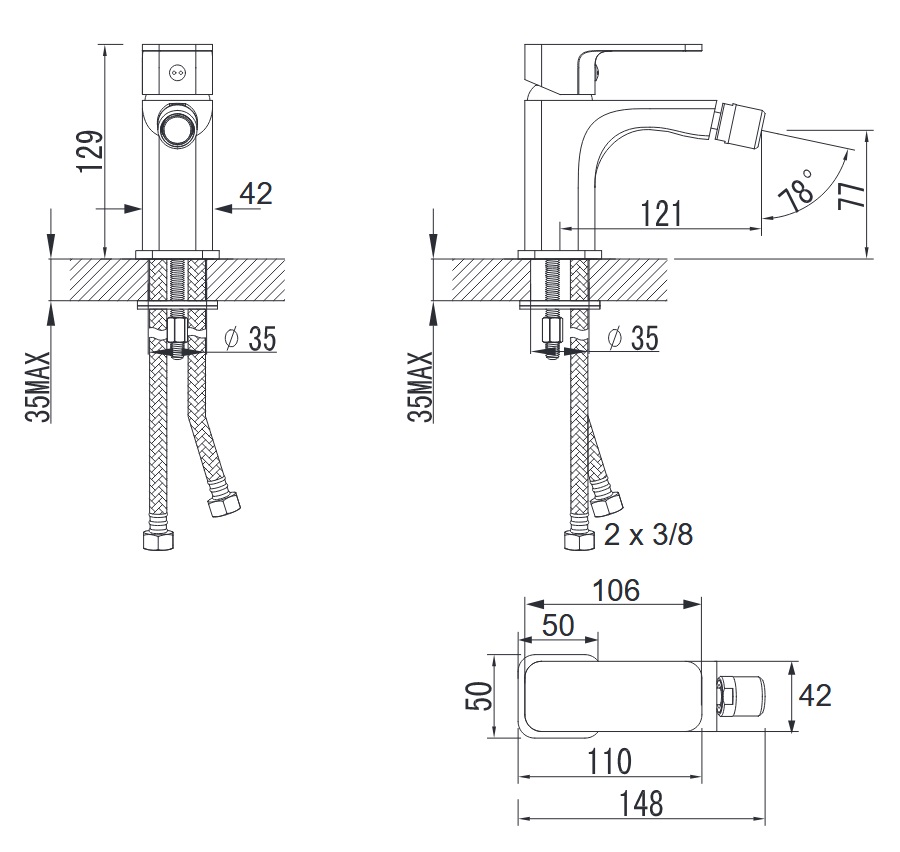 Omnires Apure Bateria bidetowa jednootworowa Chrom AP2220CR