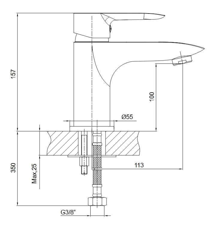 Omnires Mackenzie Bateria umywalkowa jednootworowa bez korka Chrom MA3210CR
