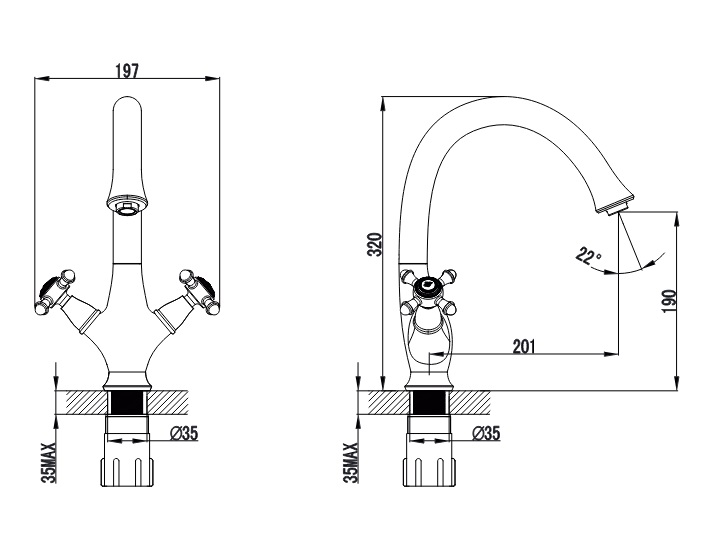 Omnires Retro Bateria kuchenna jednootworowa z obrotową wylewką Chrom RE7251CR
