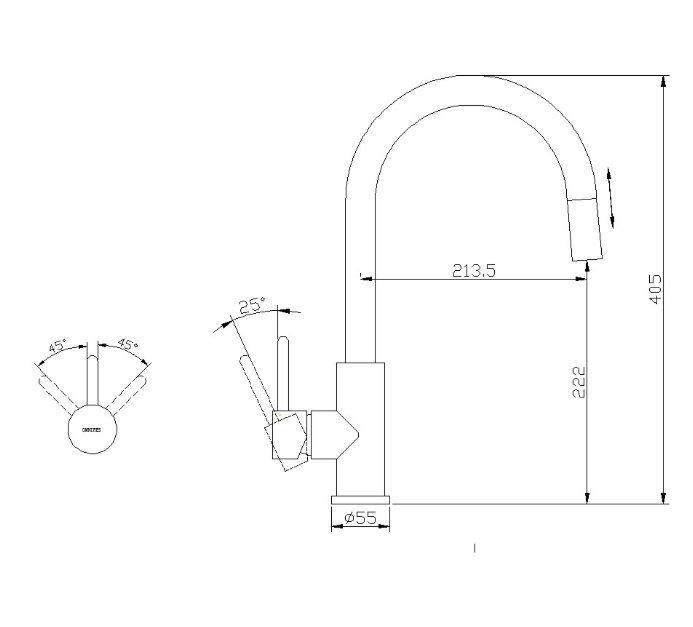 Omnires Y Bateria kuchenna jednootworowa z obrotową i wyciąganą wylewką Inox Y1255IN