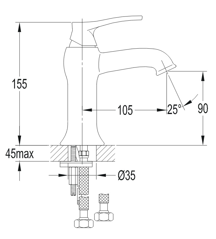 Omnires Art Deco Bateria umywalkowa jednootworowa bez korka Brąz antyczny AD5110BR