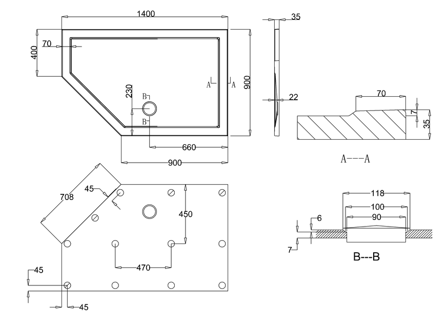 Brodzik może być montowany bezpośrednio na posadzce lub na nóżkach.