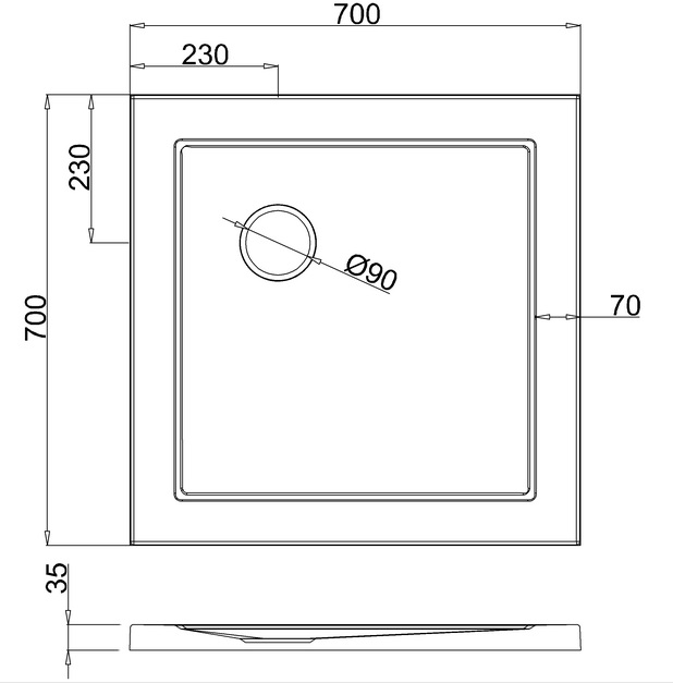 Britton Zamori Brodzik kwadratowy 700x700 mm Biały Z1158A
