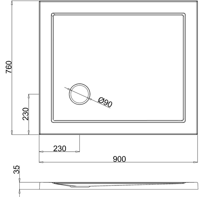 Britton Zamori Brodzik prostokątny 900x760 mm Biały Z1163A