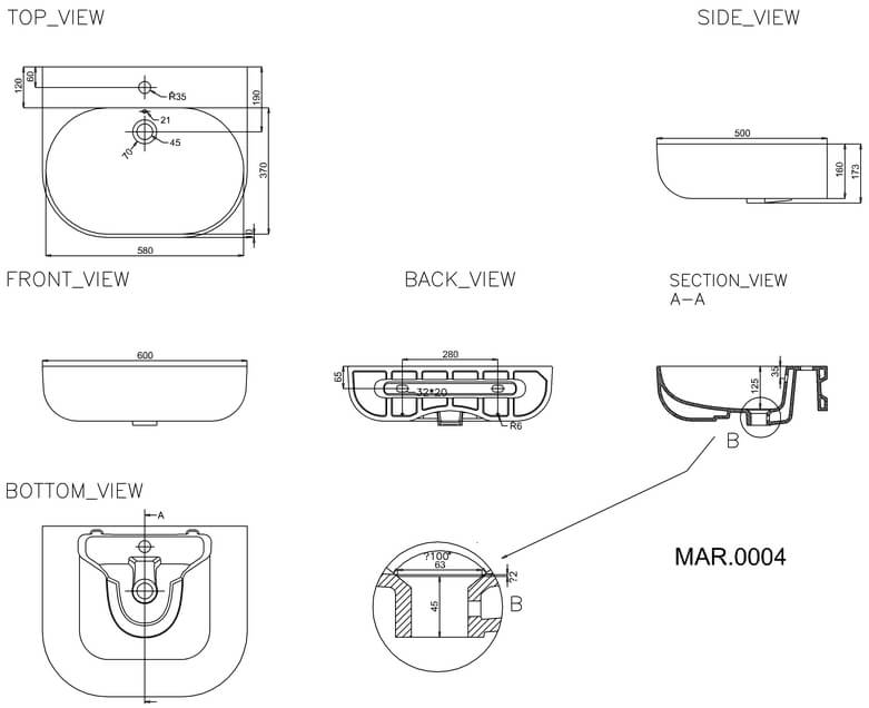 Britton Milan Umywalka ścienna 60x42 cm Biały MAR.0004