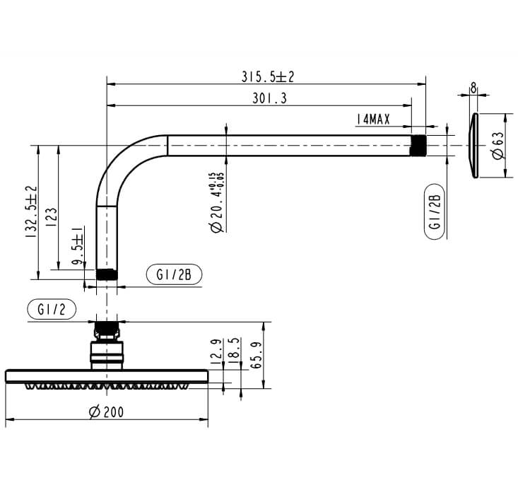 średnica deszczownicy: 200 mm