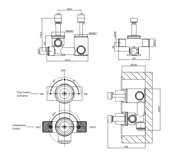- bateria termostatyczna: HOX.023MB, HOX.023CP, HOX.023BB