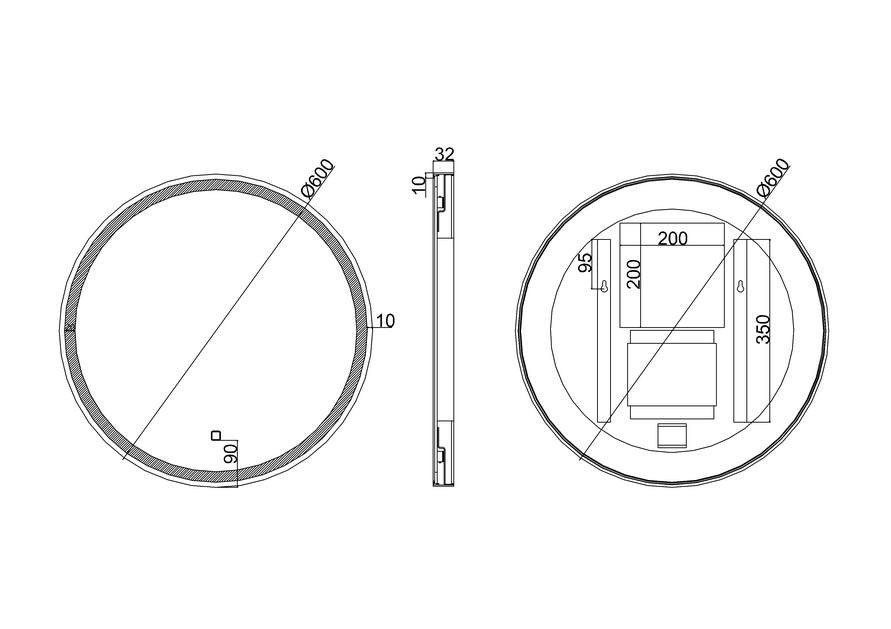 Umieszczenie czujnika: 90 mm od dolnej krawędzi lustra