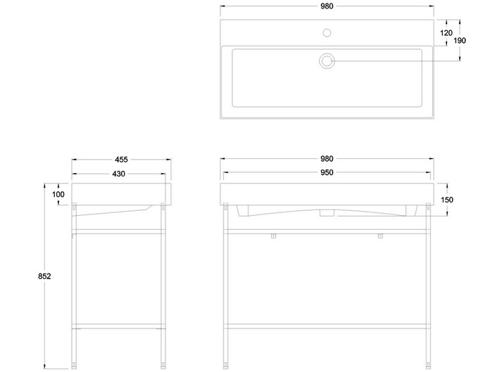 Britton Shoreditch Stelaż pod umywalkę 950x430 mm polerowana stal nierdzewna FRAME104