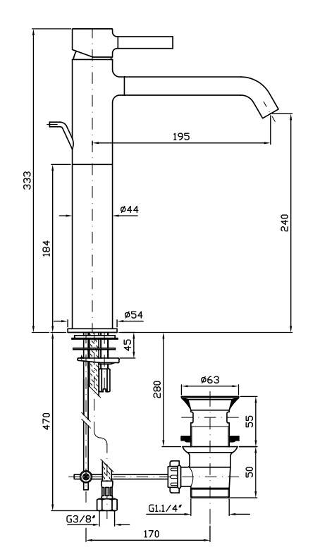 Jednouchwytowa bateria umywalkowa podwyższona, perlator, korek 1 ¼”, wężyki elastycznePopularne w Strefie Luksusu
