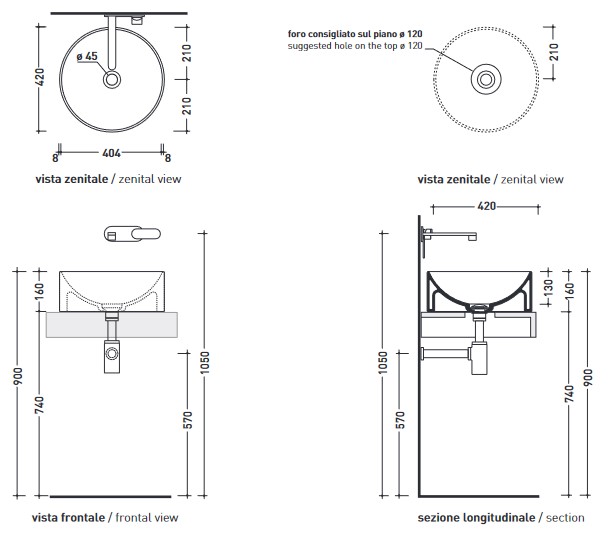 Flaminia Twin Set Slim 42 Umywalka stawiana na blat Ø 42 cm biała TW42C