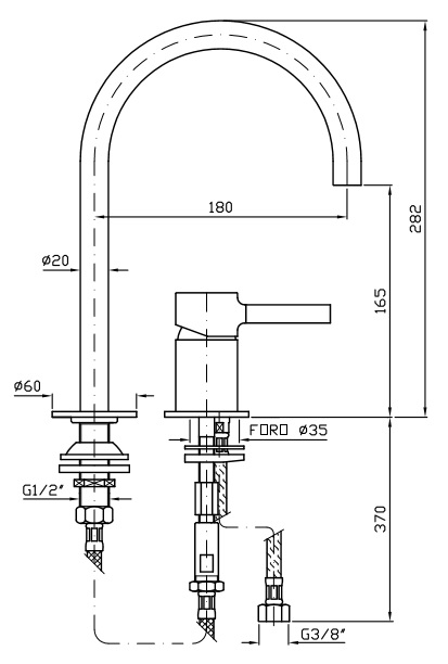2-otworowa, jednouchwytowa bateria umywalkowa, wylewka obrotowa, perlator, wężyki elastyczne