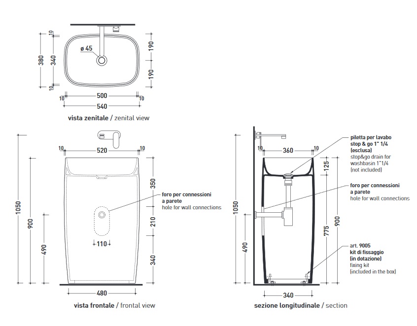 Flaminia Flag Umywalka stojąca 52x36 cm Carbone FG52PCAR