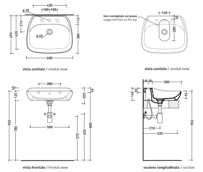 Flaminia Fluo 60 Umywalka nablatowa - wisząca 60 cm argilla FU60LARG