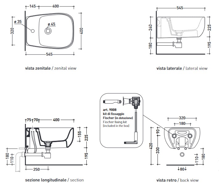Uniwersalny uchwyt mocujący do wiszących WC i bidetów (41/P)