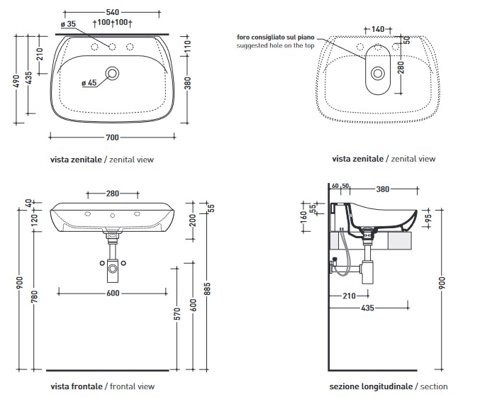 Flaminia Fluo 70 Umywalka nablatowa - wisząca 70 cm carbone FU70LCAR