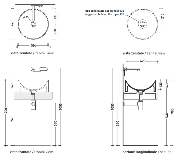 Flaminia Twin Set Slim 42 Umywalka stawiana na blat Ø 42 cm carbone TW42CCAR