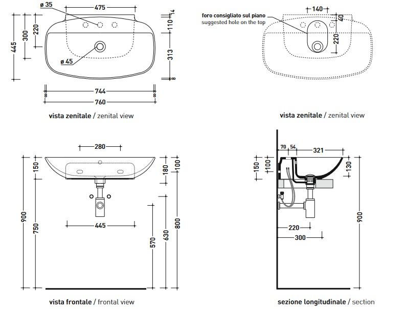 Flaminia Nuda Umywalka ścienna owalna 76x44,5x15 cm biały ND75PR Umywalka ścienna owalna