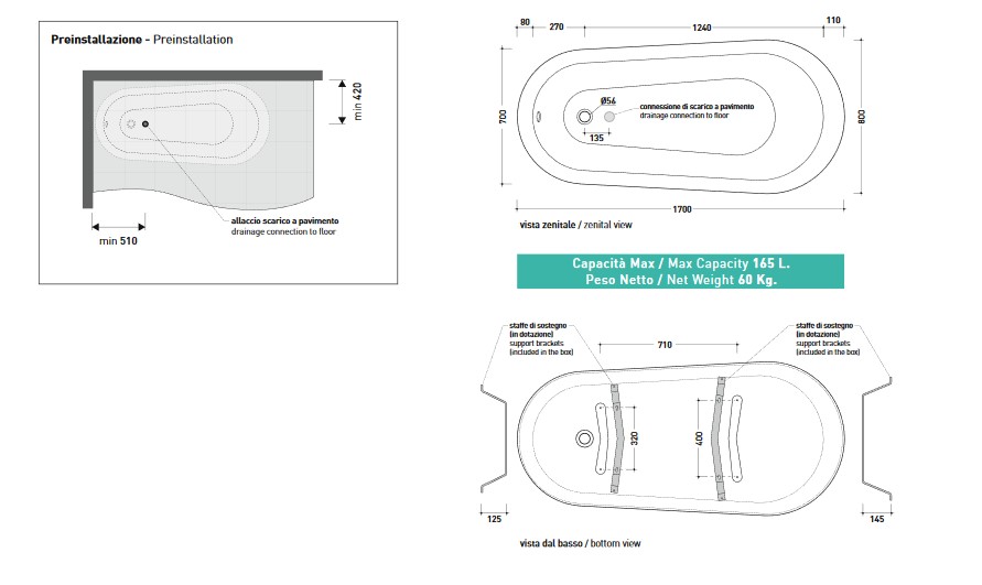 Flaminia Evergreen Wanna wolnostojąca 170x80x71 cm biały EG171