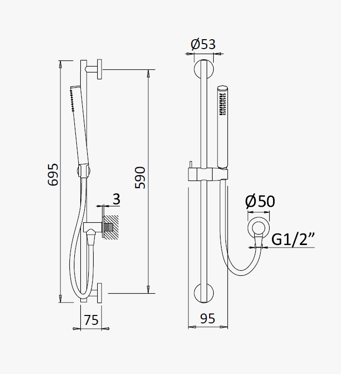 słuchawka, drążek, przyłącze kątowe, wąż 175 cm