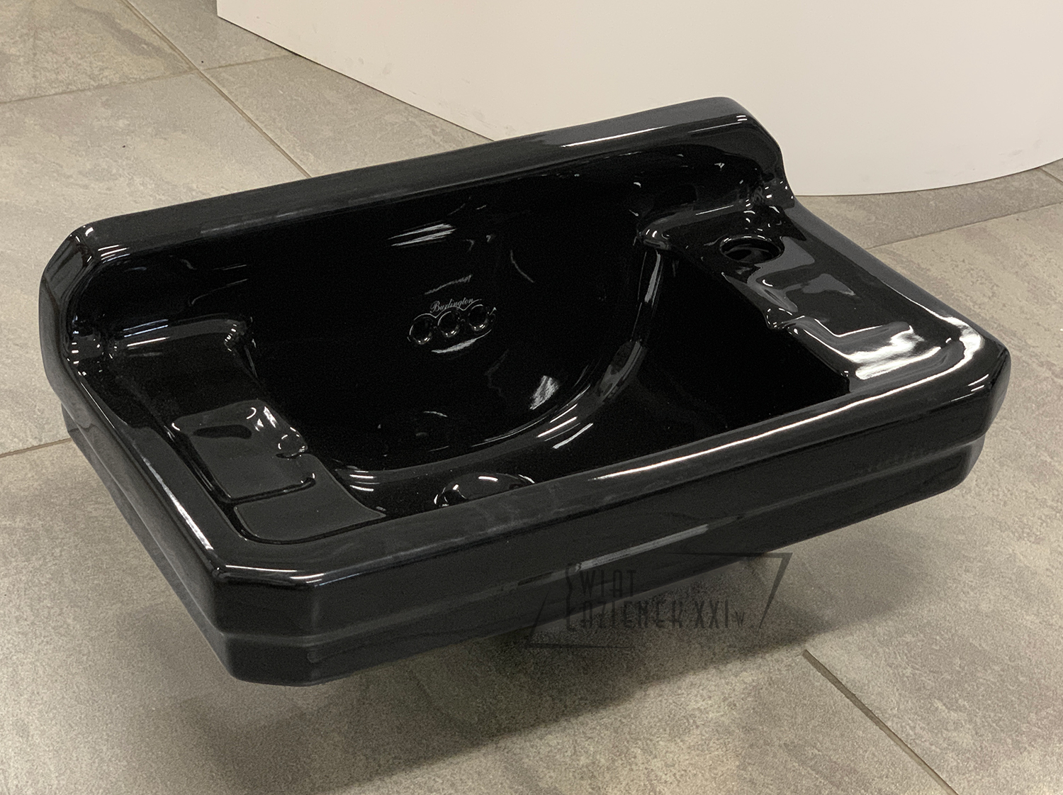 Burlington Edwardian Cloakroom Umywalka ścienna Prawa 51x30 cm jednootworowa, Czarny połysk B8RJET