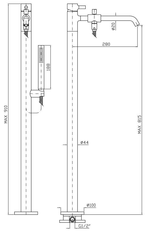 Jednouchwytowa bateria wannowa wolnostojąca z przełącznikiem oraz zestawem natryskowymPopularne w Strefie Luksusu