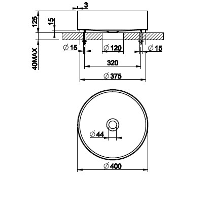 Gessi Venti20 Umywalka nablatowa Ø40 cm bez przelewu steel brushed 65601.239