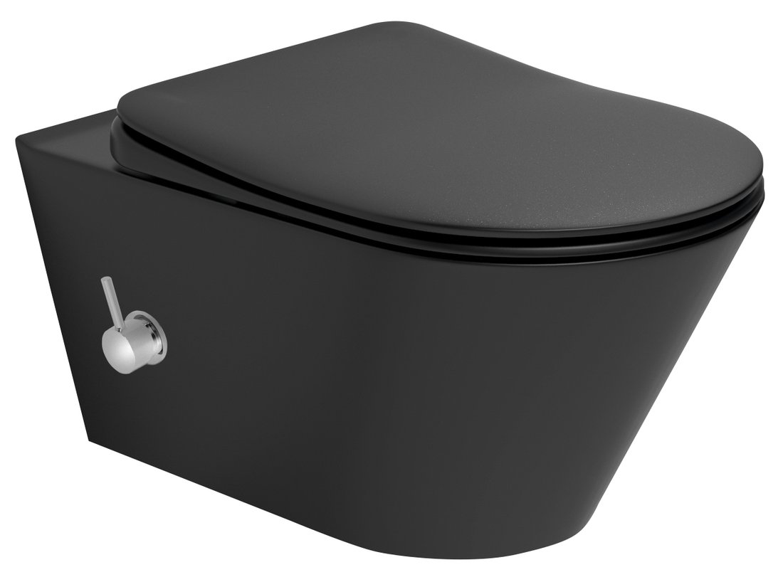Sapho Awa Miska wisząca bezrantowa /Rimless z funkcją bidetki 35,5x53 cm z deską WC wolnoopadającą czarny mat 100315-110+100787-110