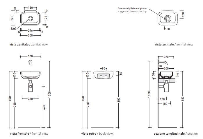 Flaminia Pass Umywalka stawiana na blat 30x22 cm biała PS30LD