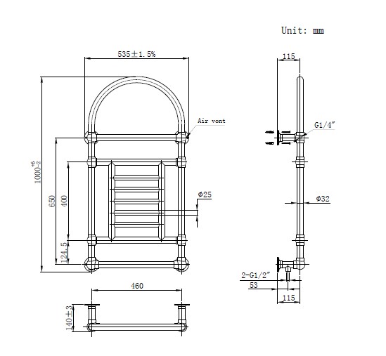 Galatea Design Angel Grzejnik wodny ścienny 100x53,5 cm z zaworami gold GDAHC102GOLD+GDAHC75GOLD