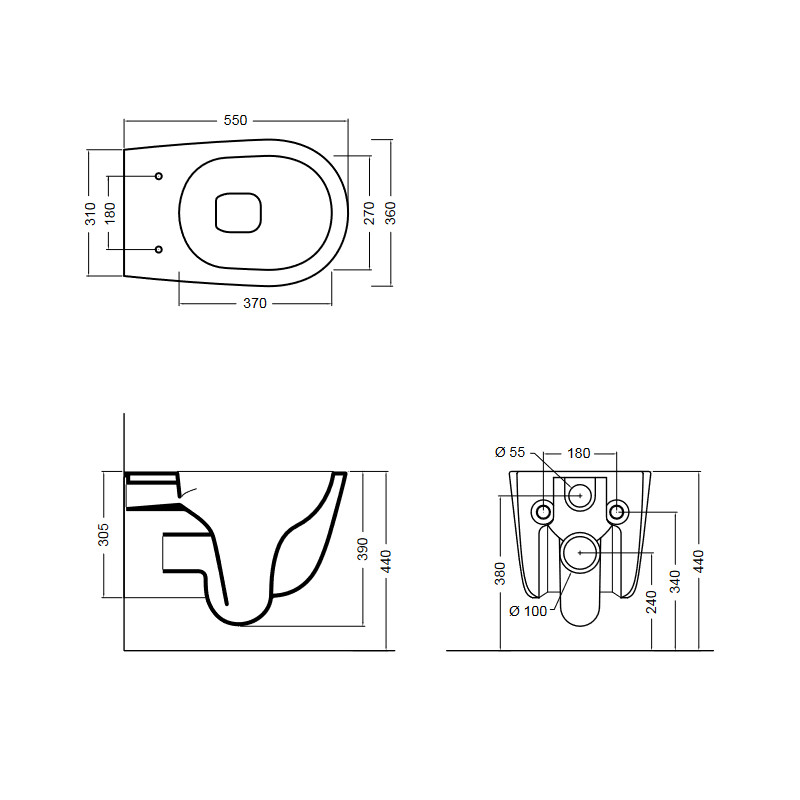 Axa EVA Miska ścienna 55x36 cm z deską WC wolnoopadającą Biały połysk 8801401+AF8801