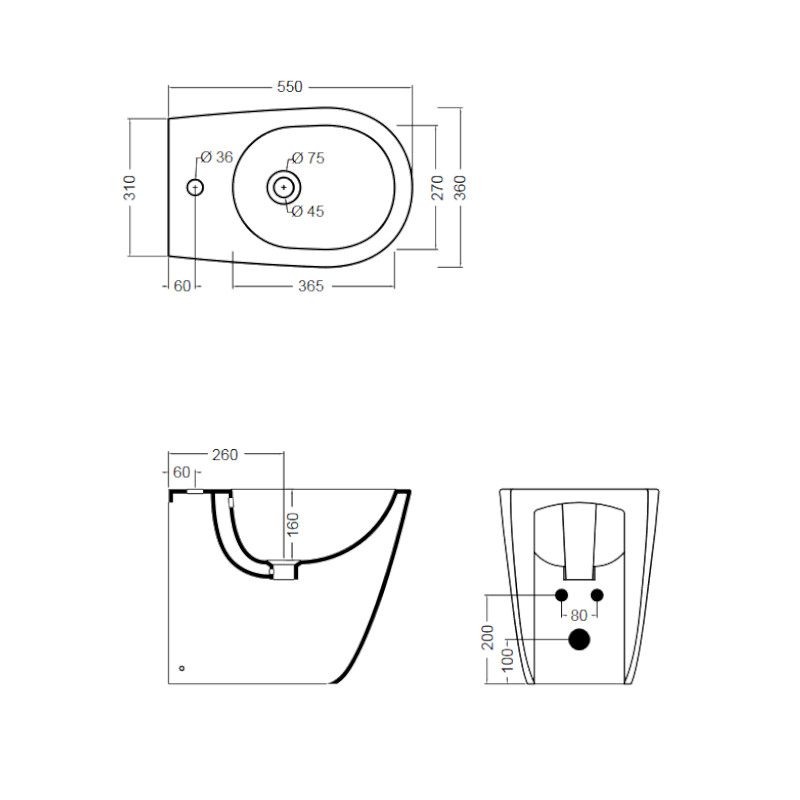Axa EVA Bidet stojący 55x36 cm Czarny mat 8802207