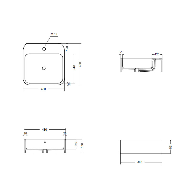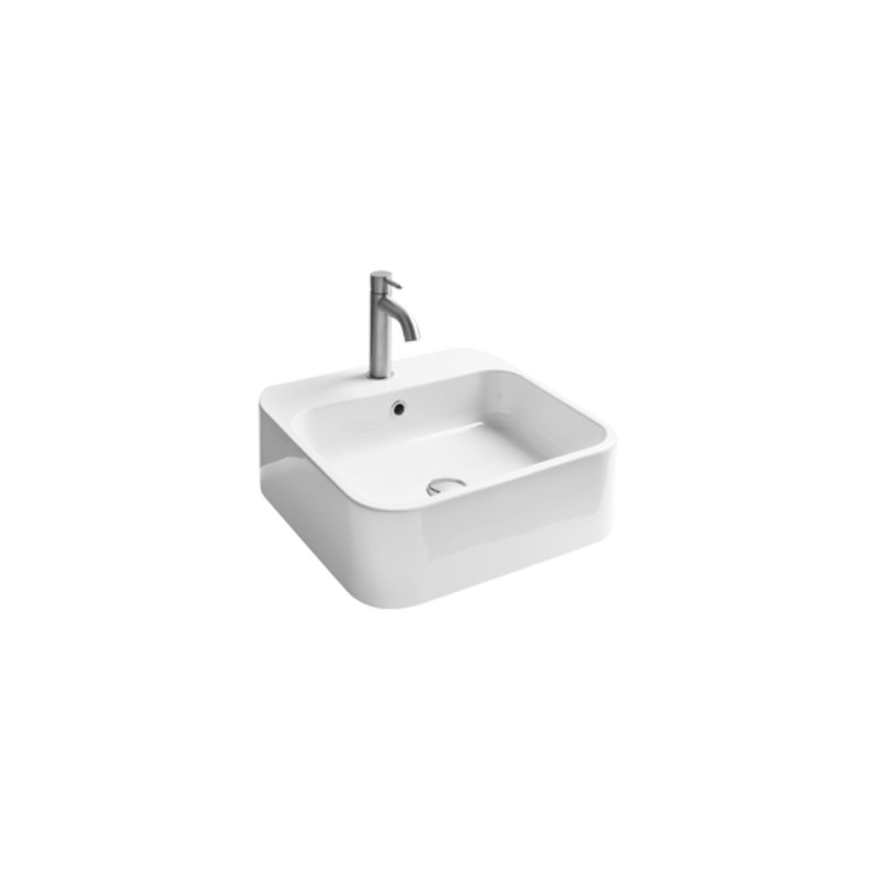 Axa COSA Umywalka stawiana na blat 48x48 cm z korkiem Click-clack Biały połysk 8610201+AF0015