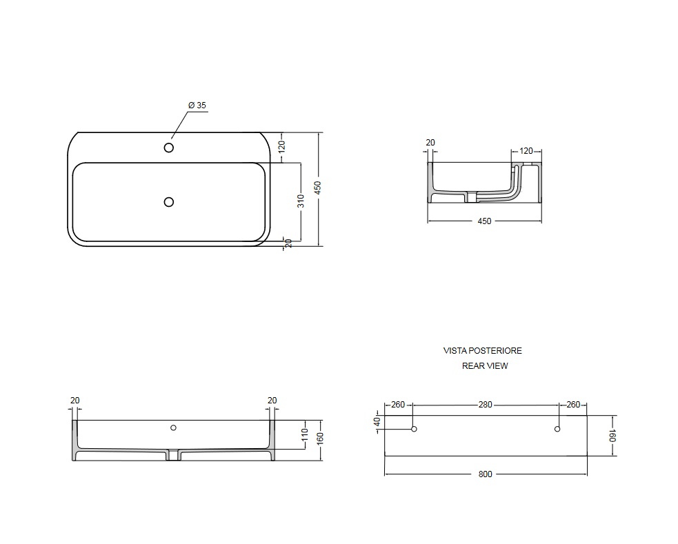 Axa COSA Umywalka stawiana na blat 45x80 cm z korkiem Click-clack Biały połysk 8630001+AF0015