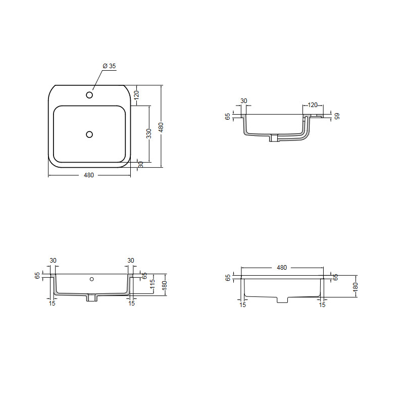 Axa COSA Umywalka wpuszczana w blat 48x48 cm z korkiem Click-clack Biały połysk 8610001+AF0015
