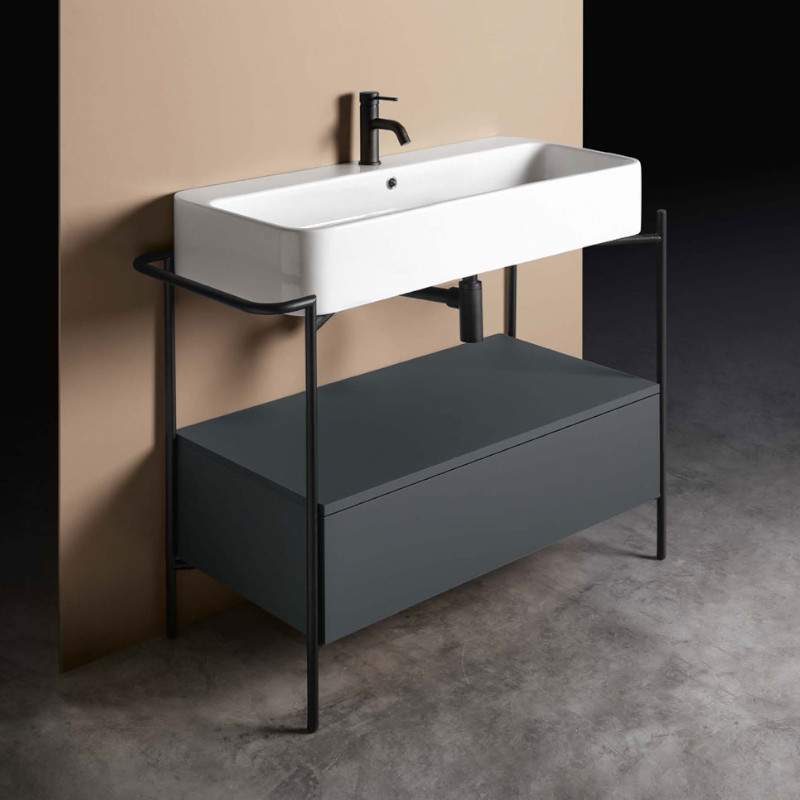 Axa COSA Stelaż podumywalkowy z umywalką z korkiem Click-clack i szufladą Czarny mat/Grey Matt S863007+MSC115GM+8641001+AF0015