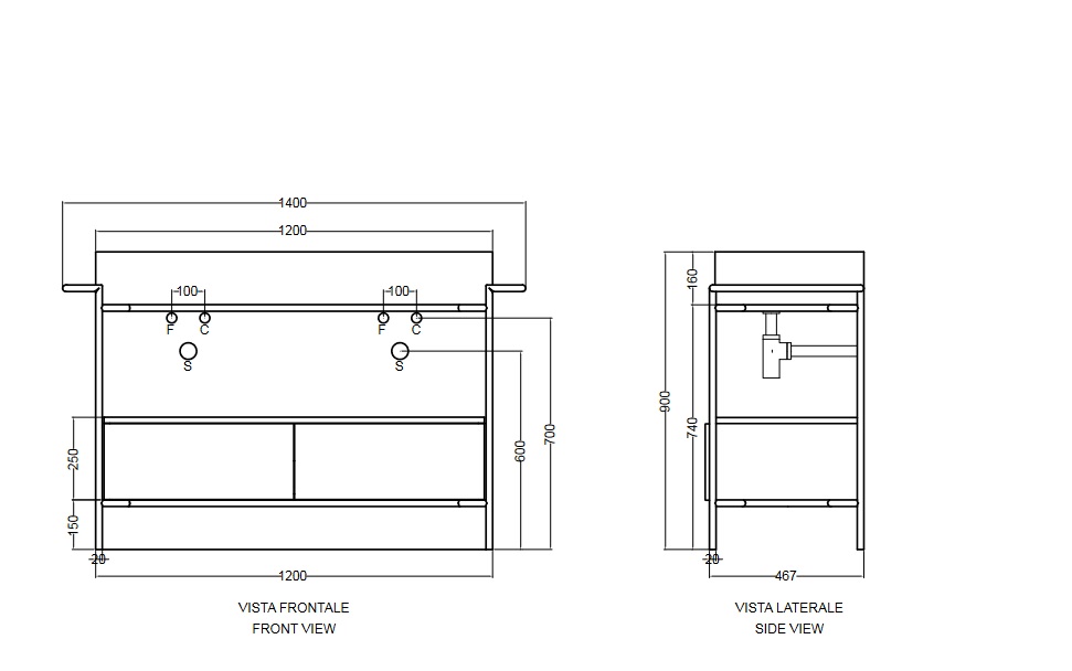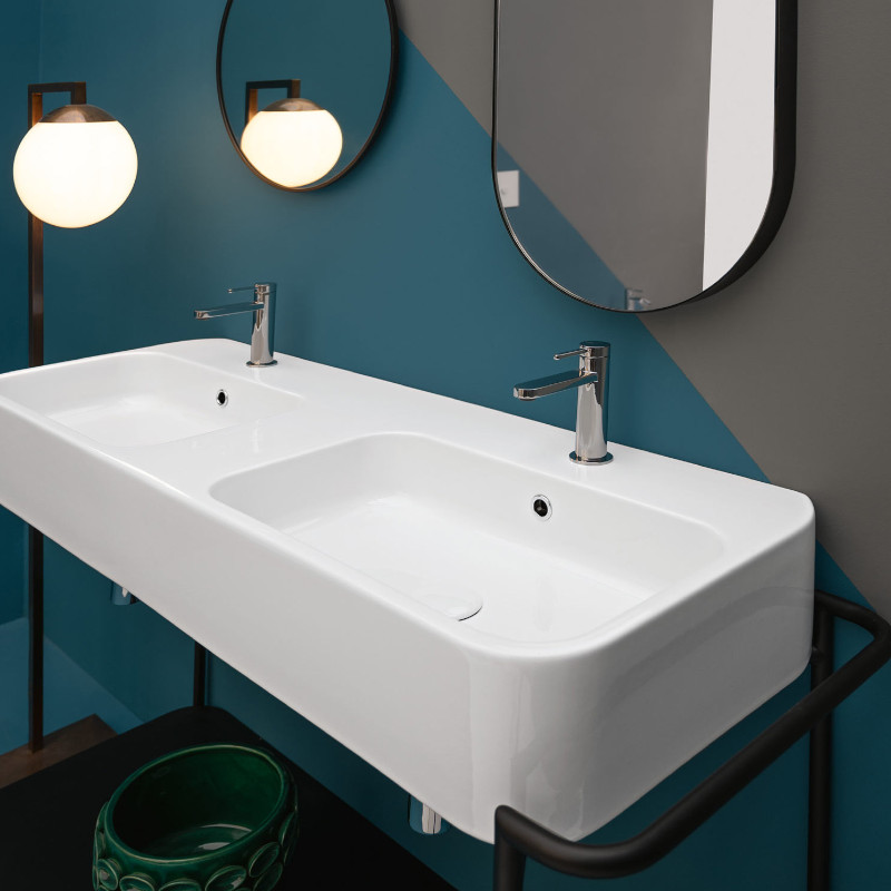 Axa COSA Stelaż podumywalkowy 140 cm z umywalką 2 komorową z 2 korkami Click-clack i półką Czarny mat/Biały Matt S865007+R8612007+8650001+AF0015