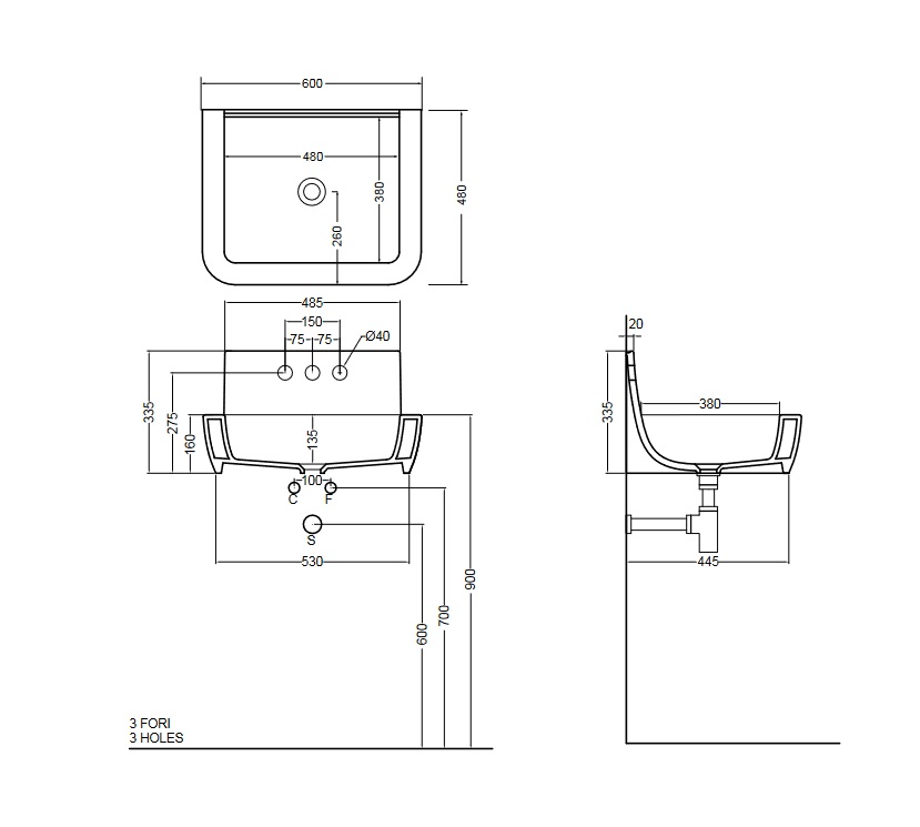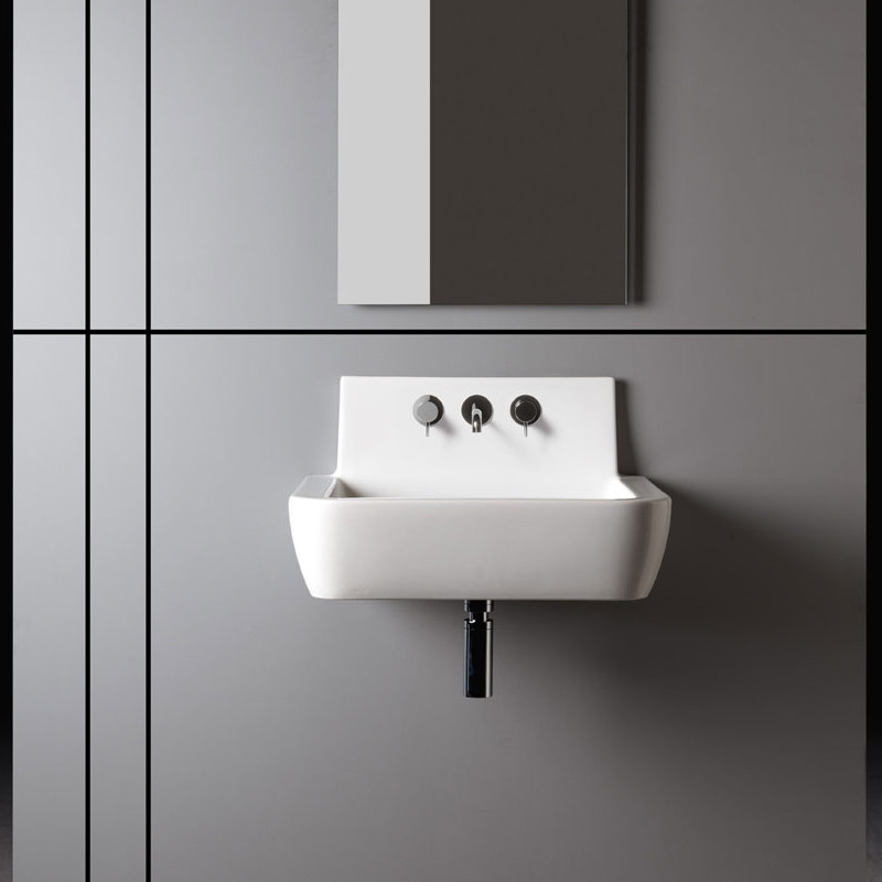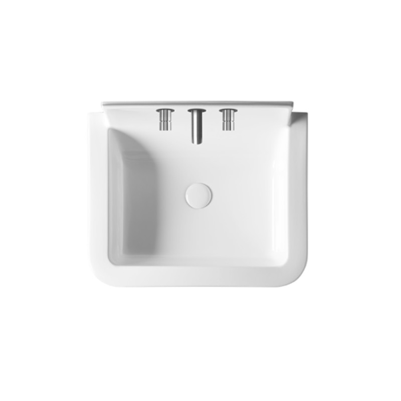 Axa RADICI Umywalka ścienna 60x48 cm z 3 otworami na baterię z korkiem Click-clack Biały połysk 87300013F+AF0015