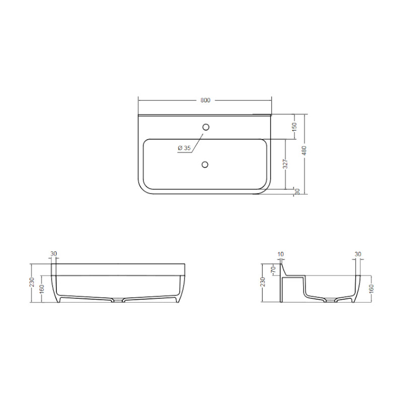 Axa RADICI Umywalka ścienna/stawiana na blat 80x48 cm z korkiem Click-clack Biały połysk 8710001+AF0015