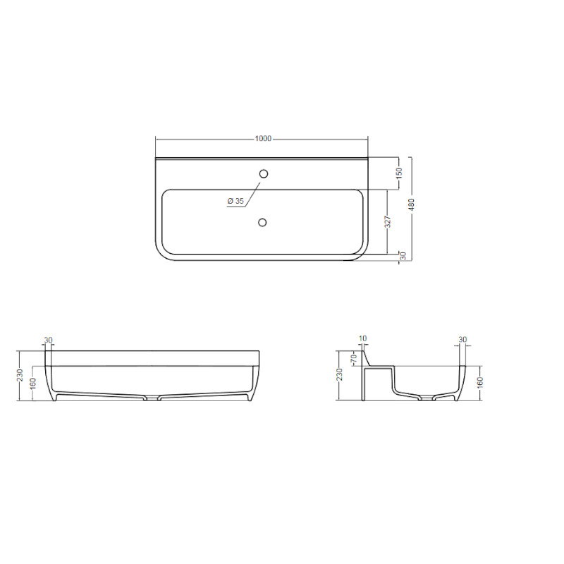 Axa RADICI Umywalka ścienna/stawiana na blat 100x48 cm z korkiem Click-clack Biały połysk 8720001+AF0015