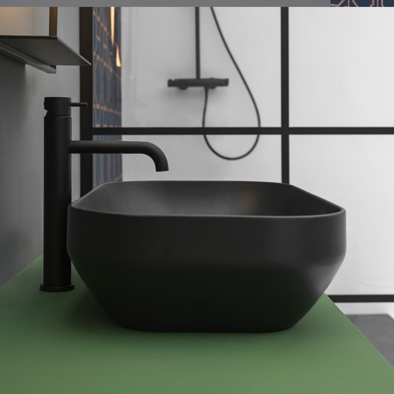 Axa DECUS Umywalka stawiana na blat 35x60 cm z korkiem Click-clack Czarny mat 8530007+AF001507