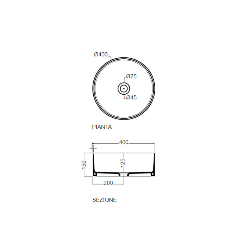 Axa MATE Umywalka stawiana na blat ∅ 40 cm z korkiem Click-clack Czarny matt 7820007+AF001507