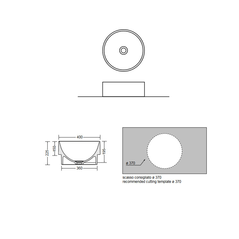 Axa DP Umywalka półwpuszczana w blat ∅ 40 cm z korkiem Click-clack Biały połysk 8430001+AF0015