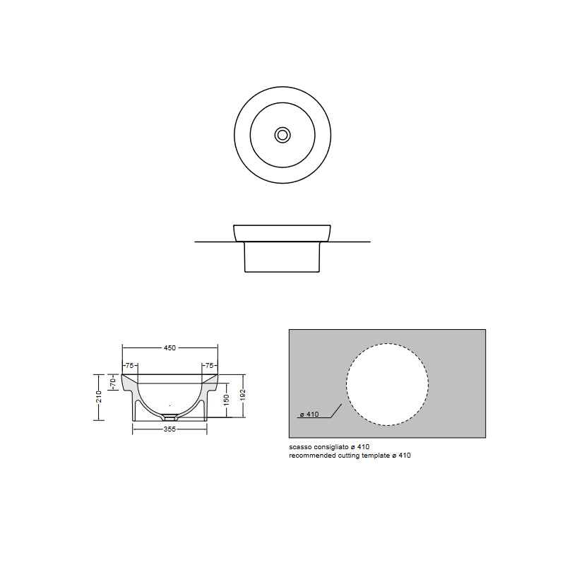 Axa DP Umywalka półwpuszczana w blat ∅ 45 cm z korkiem Click-clack Biały połysk 8310001+AF0015