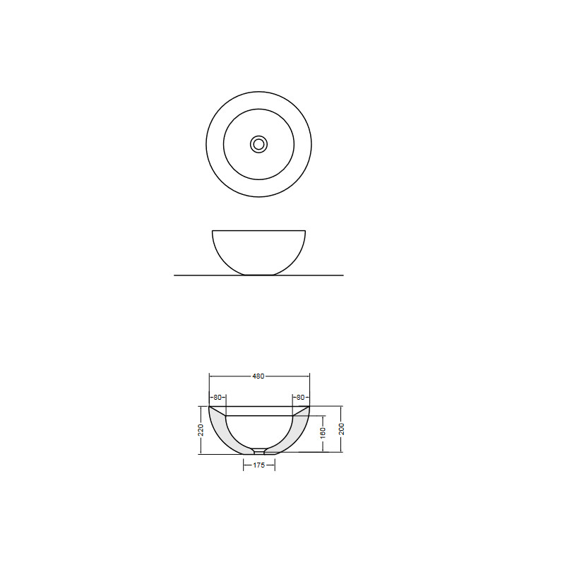 Axa DP Umywalka stawiana na blat ∅ 48 cm z korkiem Click-clack Biały połysk 8320001+AF0015
