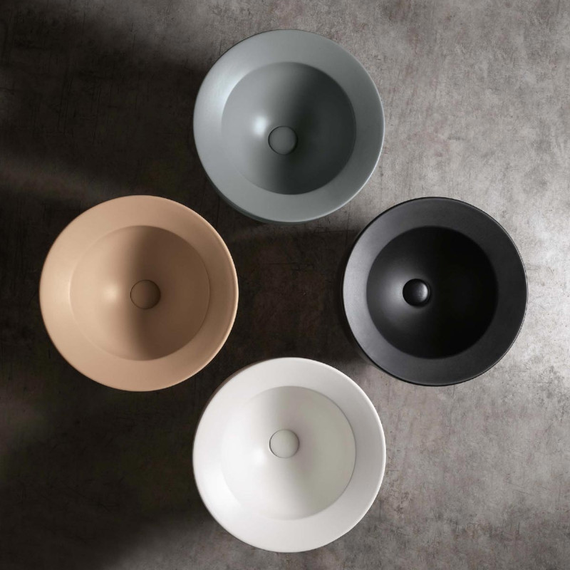 Axa KRACKLITE Umywalka stawiana na blat ∅ 46 cm z korkiem Click-clack z komodą owalną Biały połysk/Avio 8050001+AF0015+200M18